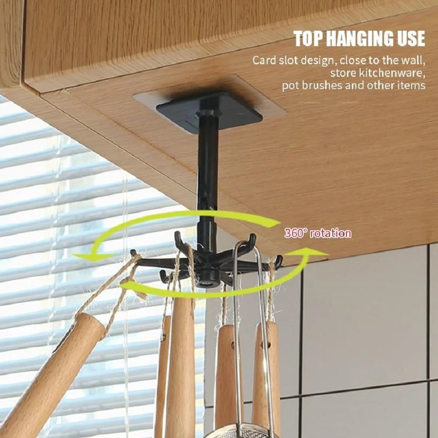 Rotating Shelf Telescopic Kitchen Spoon Storage Rack Hanger