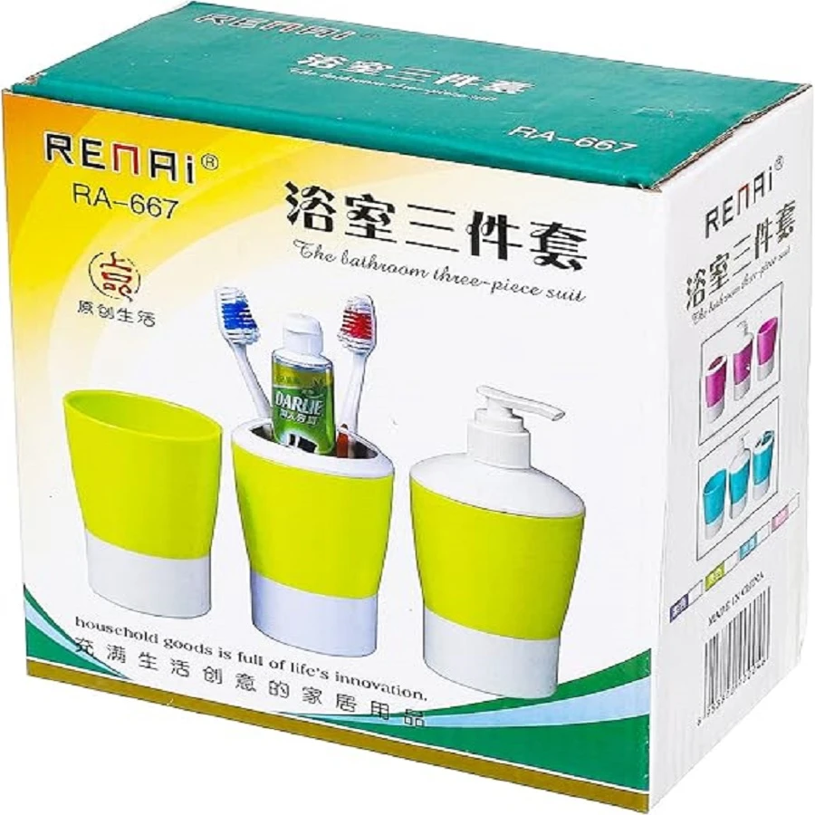 Bathroom Accessory Set 3 Pieces - Pink White