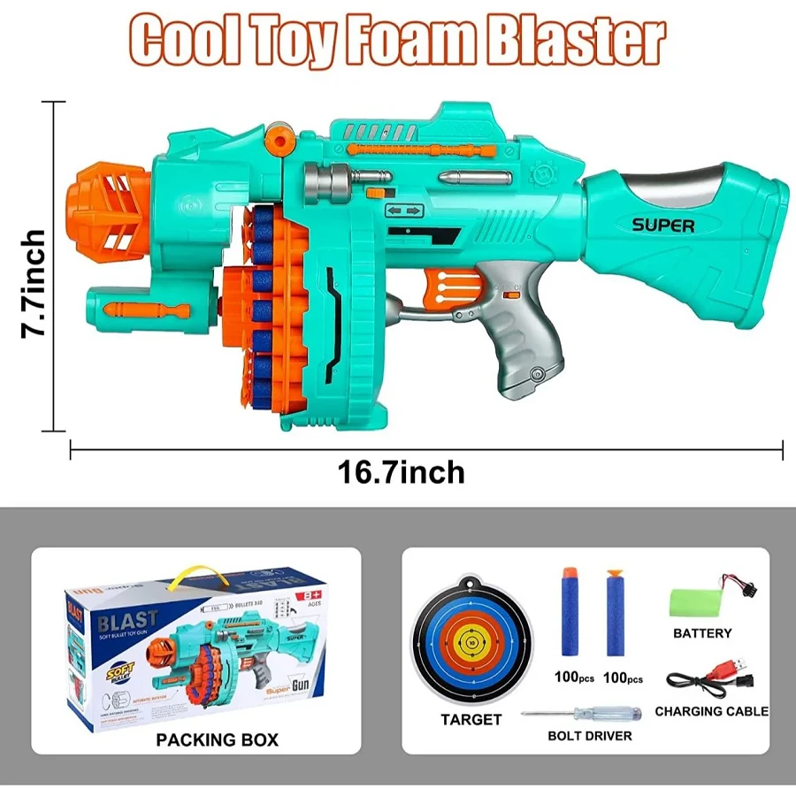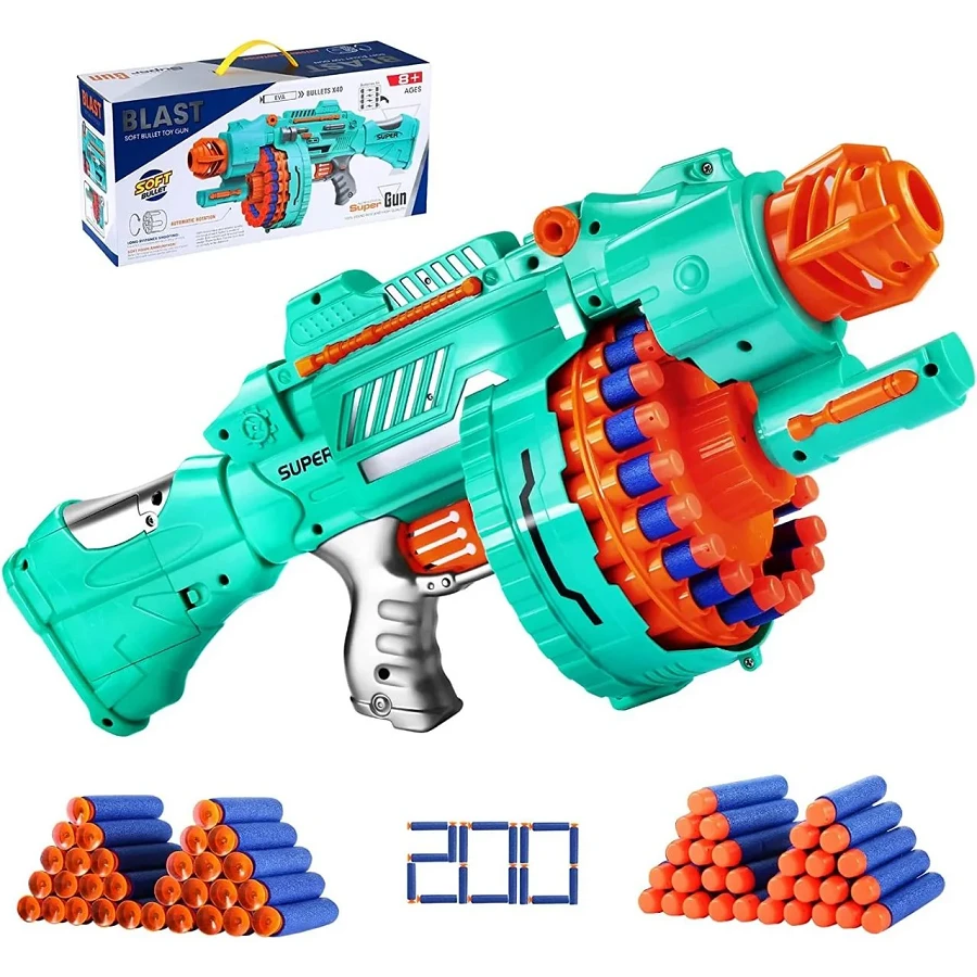 Automatic Drum Gun Action: Experience rapid-fire fun with the Automatic Drum Gun feature. The toy gun is equipped with an automatic firing mechanism that allows for continuous shooting, creating an intense and engaging playtime experience.