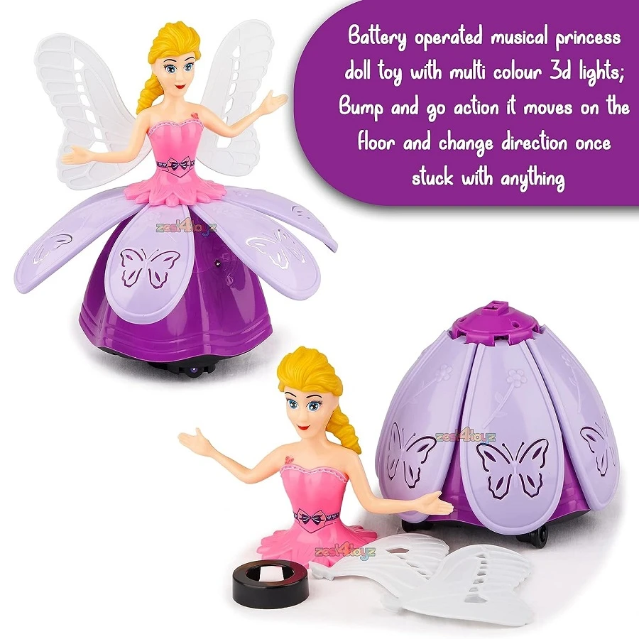 • Zest 4 Toyz Musical Toys For Kids Dancing Doll Toy Princess 360 Degree Rotating Light & Sound Toy with Bump and Go action For 1 Year Old Baby Boys & Girls - Random Colors and Designs (Pack of 1)