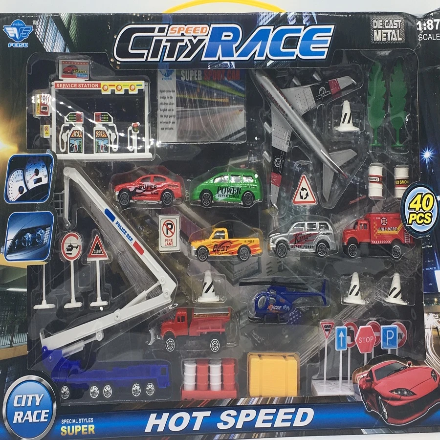 DIE-CAST CAR CITY CARS SET, FREE-WHEEL / 40 PS