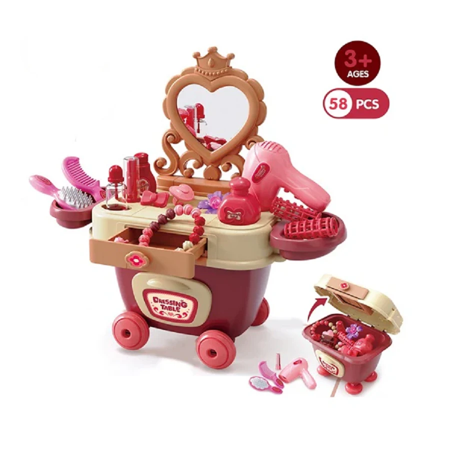 1. 2 IN 1 dressing table and cart design is easy for kids to carry