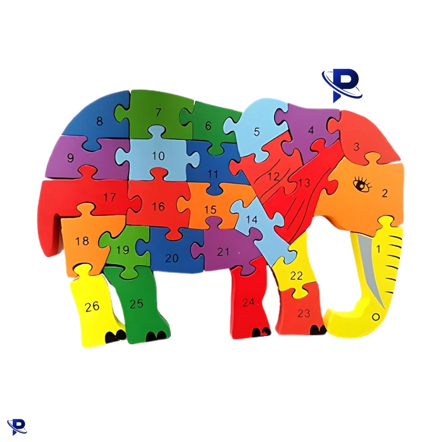 Elephant Wooden Jigsaw Puzzle 1 Side Alphabets & Other Side Numbers - Multicolor