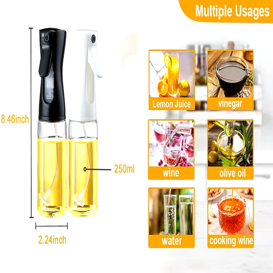 • EASY TO USE: The wide opening of the spray bottle makes it easy to fill the cooking oil spray bottle without the need for a funnel. The specially designed bottle of olive oil sprayer is tightly sealed to prevent leakage and dirty oil stains.