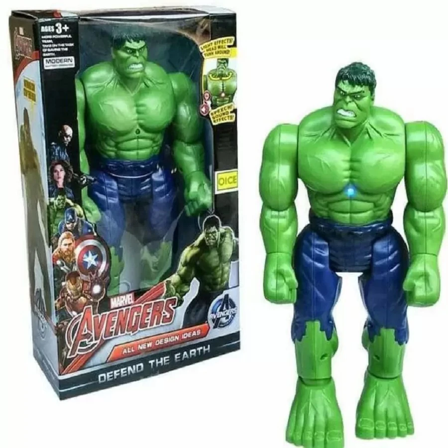 Hulk is a mountain of sheer destructive force with strength beyond anything the world has ever seen. Towering in at 12 inches tall this Hulk figure is a bulked-up gamma-powered force to be reckoned with. Create giant-sized action figure battles with the Marvel Titan hero series. These super heroes are ready to team up in combat to save the world. The Avengers face their worst enemy yet, but they’ve got a secret weapon: Titan Hero Tech! This Hulk figure has the massive strength of the gamma-green superhero, but he combines it with high-tech light effects and sounds! He says phrases like “Hulk smash!” and he recognizes and reacts to other Titan Hero Tech figures (sold separately). He’ll say “Hulk smash puny robot!” to Iron Man! Team up your Hulk figure with his fellow Avengers against Ultron, and start the battle for the fate of the world! Marvel products are produced by Hasbro under license from Marvel Characters B.V.