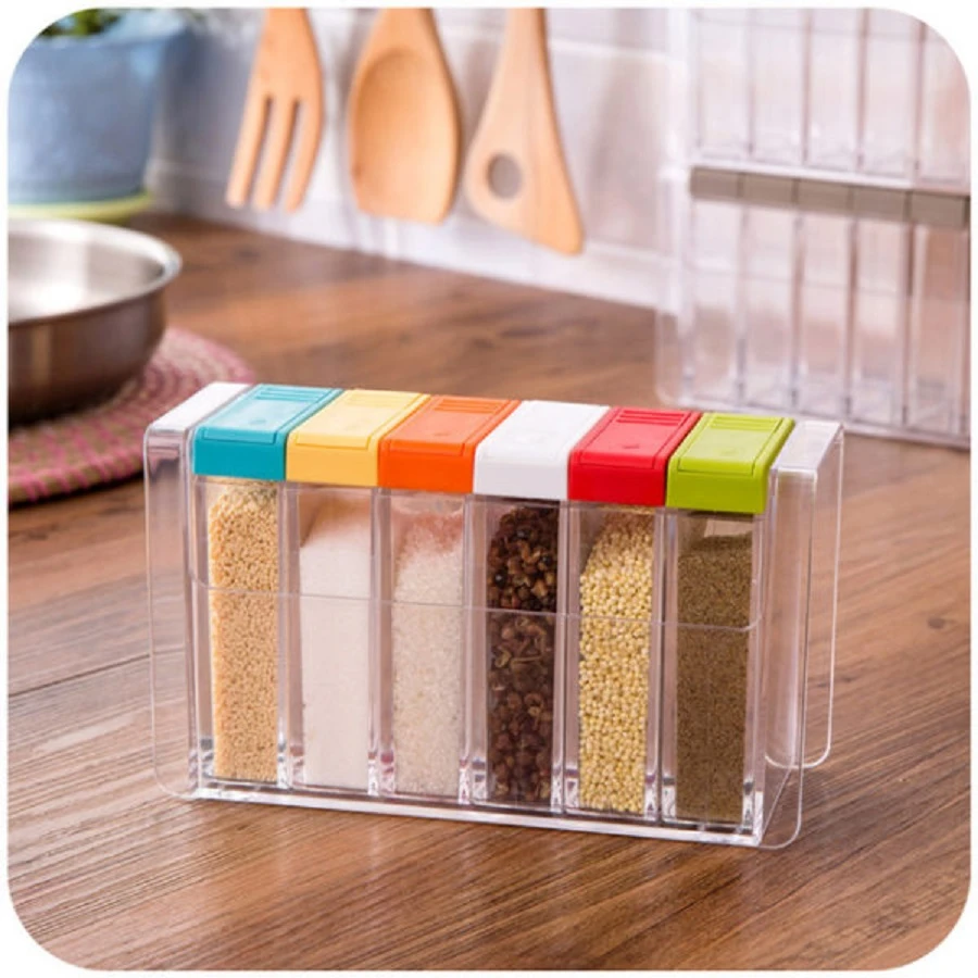Spice Jars Dispenser Masala Rack Easy Flow Storage Crystal Seasoning Box (Multi Color)