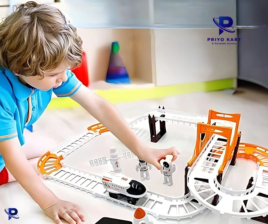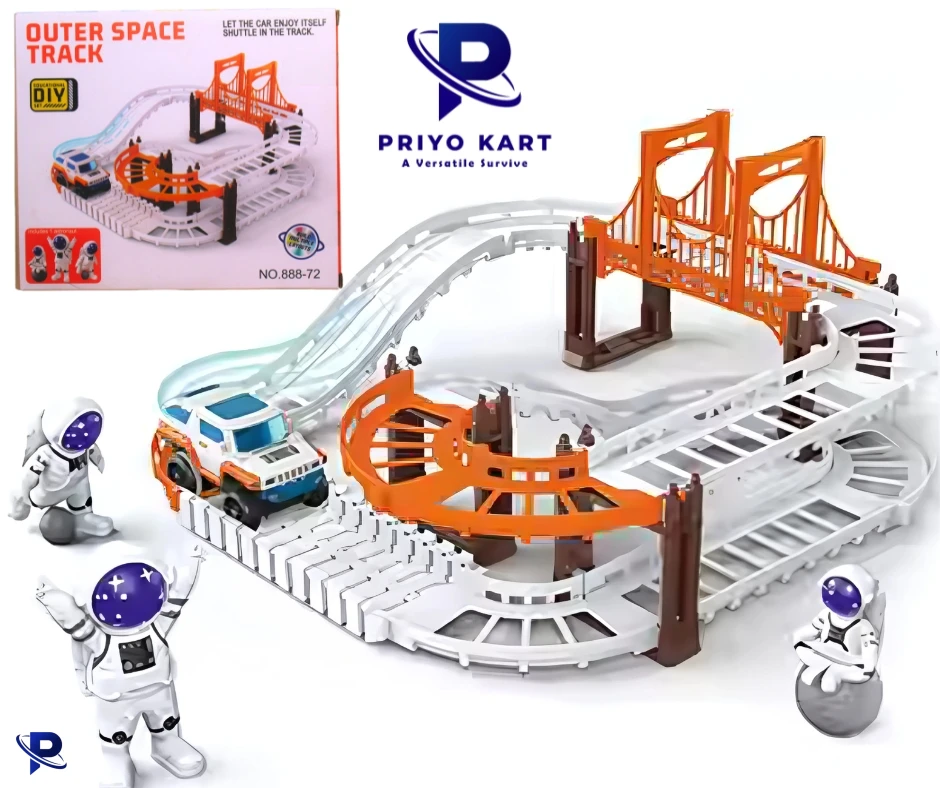 •  Explore the universe with our space toys car race track set, perfect as outer space toys for kids 5-7. The set includes diverse car track elements and astronaut figurines for an authentic space adventure.