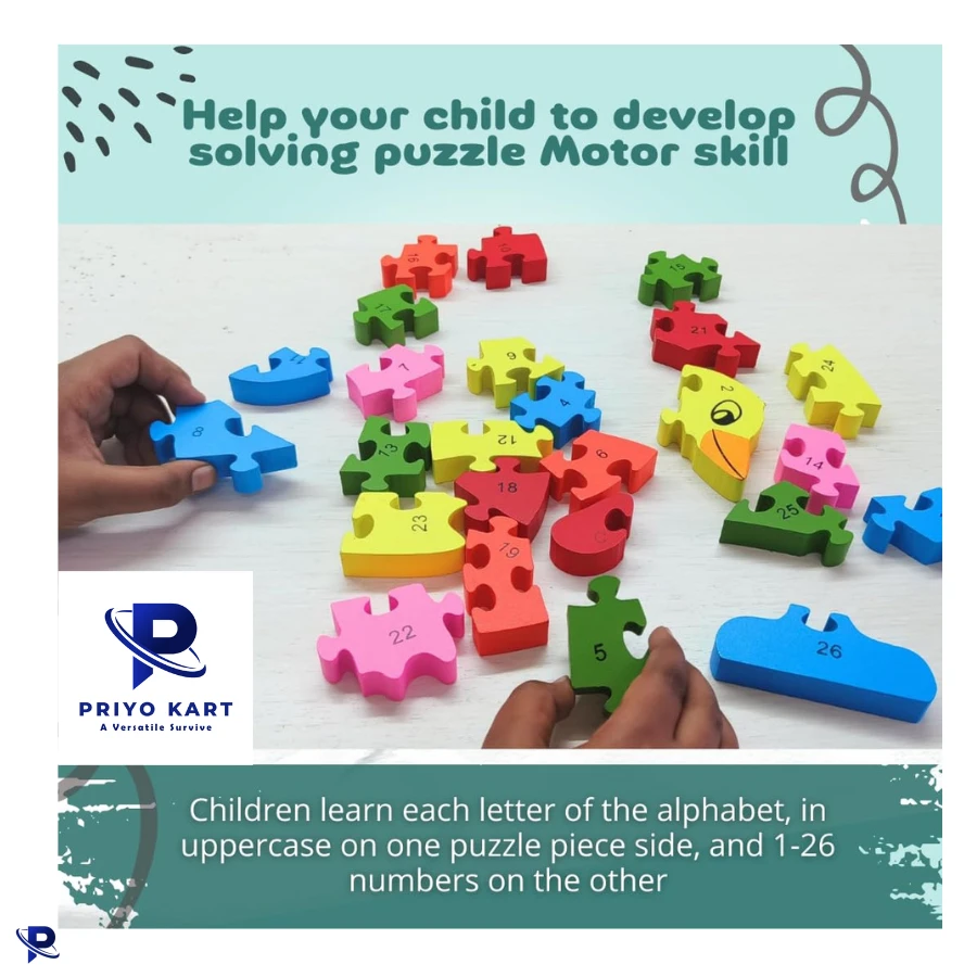 • WOODEN PUZZLE GAME - Make young minds soar, and letters come alive with A and 1-26. Help your child to develop solving puzzle Motor skill
