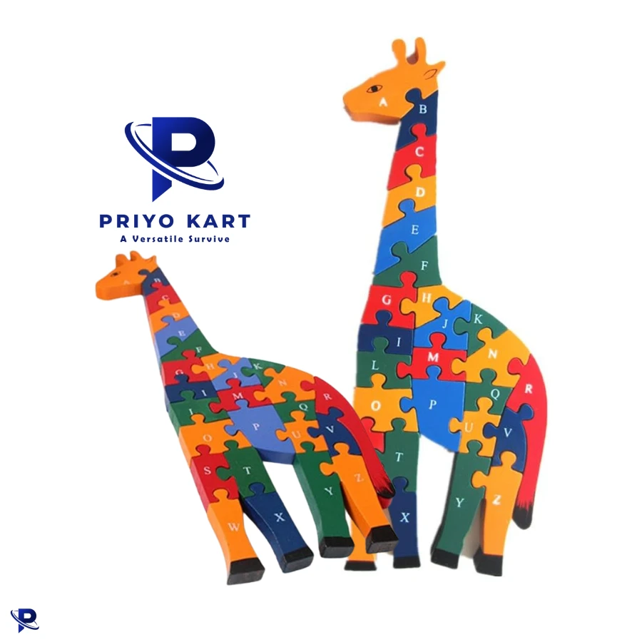 Wooden Giraffe 3D Puzzle Children's Toys Preschool Enlightenment Early Learning 26 English ABC Letters and Numbers Alphanumeric Cognition Puzzle
