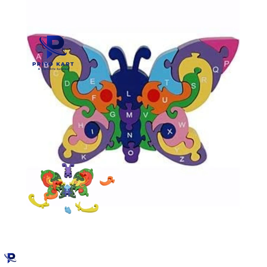 Wooden Shaped Colored Butterfly Puzzle with 26 Alphabets(A-Z) and Numbers (1-26) for Kids to Learn Letters and Numbers Colour Recognition Toy